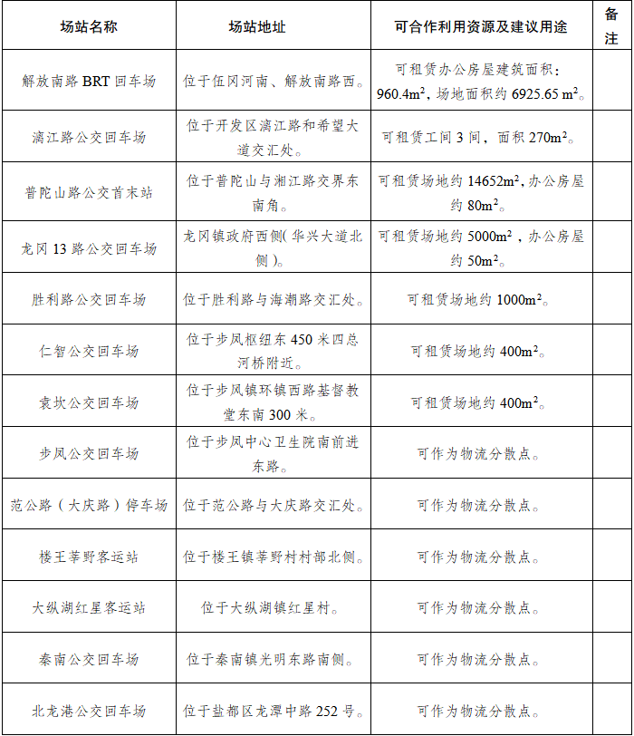 市公交公司尋求場站意向合作伙伴