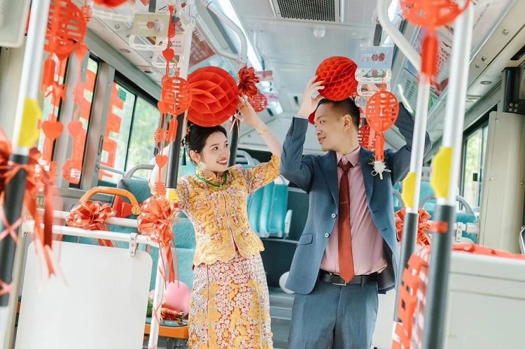 隨著人們思想觀念的不斷更新,一些創(chuàng)意十足、文明節(jié)儉、低碳環(huán)保的婚慶方式,成為部分年輕人的潮流選擇,彰顯出現(xiàn)代社會的新潮婚禮趨勢,“公交婚車”正是其中一個新形式。