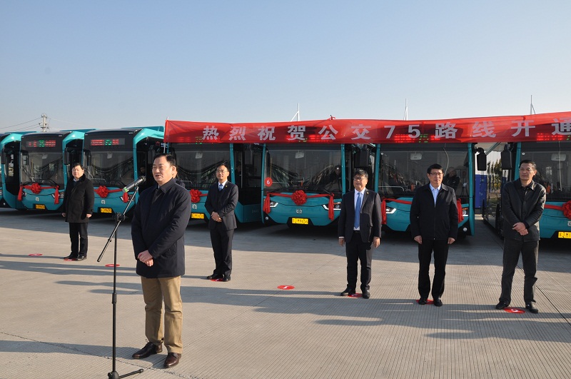 為更好地方便我市市民出行,擴(kuò)大公交線網(wǎng)覆蓋面,鹽城市公交總公司今天新開辟75路公交線路。市區(qū)75路公交線路開通儀式于22日上午在環(huán)?萍汲枪换剀噲鲰樌e行,副市長李逸浩參加了儀式并致辭。