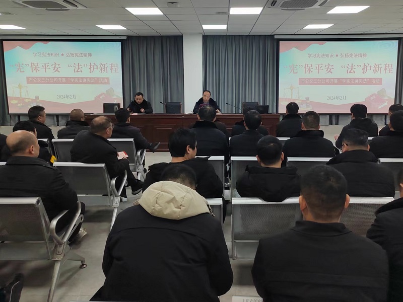 為深入學(xué)習(xí)貫徹黨的二十大精神,貫徹落實習(xí)近平法治思想和習(xí)近平總書記關(guān)于加強憲法學(xué)習(xí)宣傳教育的重要指示精神,2024年2月6日,三分公司利用月度安全教育例會契機,組織開展以“‘憲’保平安 ‘法’護新程”為主題的學(xué)憲法講憲法活動,旨在以法制宣傳教育筑牢安全生產(chǎn)防線。