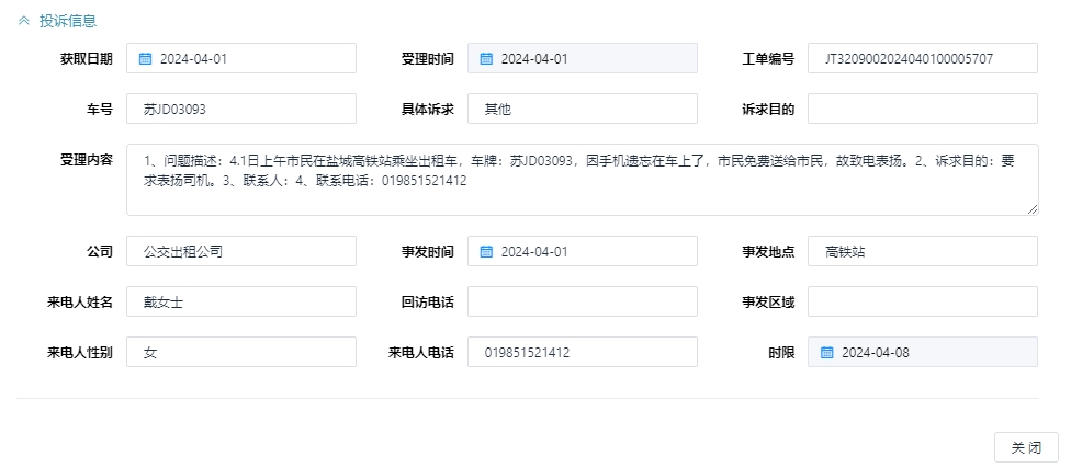 4月1日,市民戴女士撥打12345政務(wù)熱線,感謝公交出租汽車駕駛員葛開峰師傅拾金不昧、樂于助人。