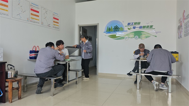 此次改造從細(xì)微處著手,充分考慮了駕駛員們的實(shí)際需求與心理感受。走進(jìn)煥然一新的職工驛站,首先映入眼簾的是寬敞明亮的用餐區(qū),驛站內(nèi)放置了3臺(tái)微波爐和一臺(tái)冰柜,方便駕駛員們隨時(shí)加熱食物、補(bǔ)充能量,大家一邊用餐一邊聊天,歡聲笑語(yǔ),共同享受家的溫暖。驛站兩側(cè)墻壁張貼了道路危險(xiǎn)源辨識(shí)圖和“家的安全寄語(yǔ)”,在駕駛員等待發(fā)車間隙起到叮囑作用,提高大家的安全意識(shí)。