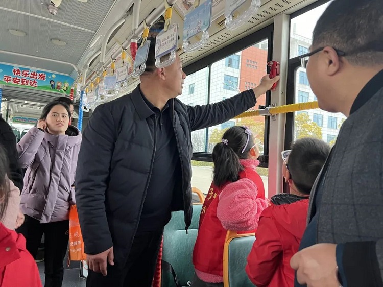在公交車內(nèi),工作人員帶領(lǐng)小記者們參觀了公交車內(nèi)部構(gòu)造,講解了駕駛員的工作日常以及車內(nèi)滅火器、安全錘等消防設施的使用方法,讓他們明白了公交駕駛員不僅要有熟練的駕駛技術(shù),還要具備良好的服務意識和責任心,為乘客提供安全、舒適的乘車環(huán)境。通過現(xiàn)場演示和互動體驗,小記者們不僅學到了實用的安全知識,提高了應急處置意識,更懂得了"安全無小事"的道理。