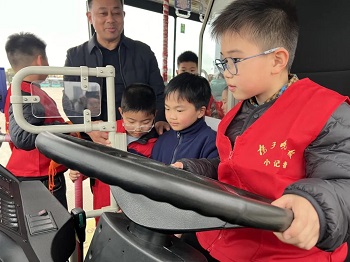 為了增加研學活動的趣味性,公司還為小記者們準備了駕駛體驗、車內(nèi)尋寶和滾輪胎游戲。小記者們化身"小小駕駛員",坐進駕駛室感受公交司機的日常工作視角。