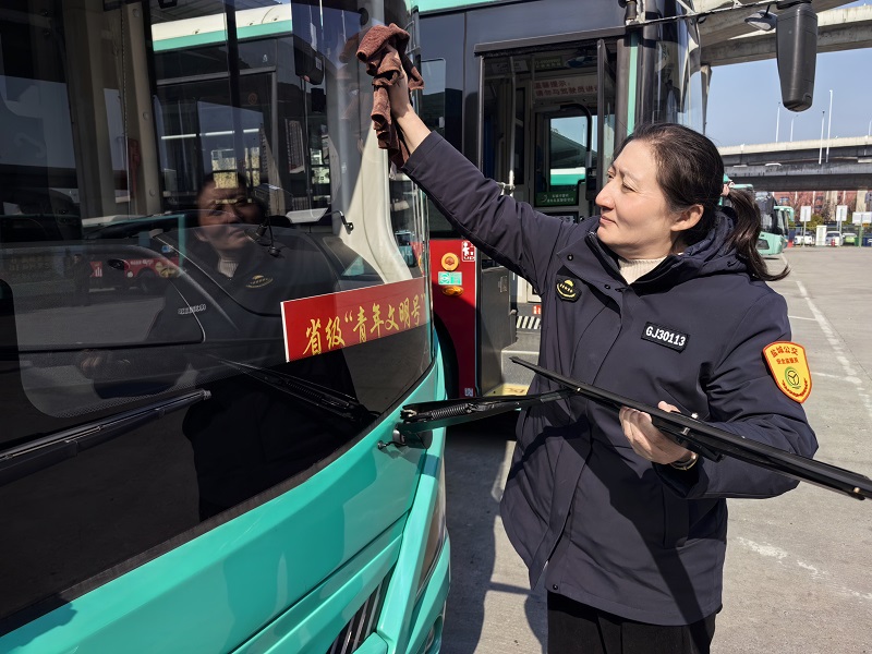 8時(shí)26分,執(zhí)行完趟次任務(wù),她拿起水杯趕緊喝上幾口,趁著發(fā)車(chē)間隙,仔細(xì)地擦拭著車(chē)輛,確保車(chē)容干凈整潔,為下一趟發(fā)車(chē)做好準(zhǔn)備。她說(shuō):“我每天有一多半時(shí)間是在公交車(chē)上度過(guò)的,公交車(chē)廂就是我的第二個(gè)‘家’,打掃干凈了,乘客坐著舒服,自己開(kāi)的也高興!”入職以來(lái),她始終保持著“零投訴、零事故”的良好記錄,得到了領(lǐng)導(dǎo)的肯定、同事的認(rèn)可和乘客的好評(píng)。