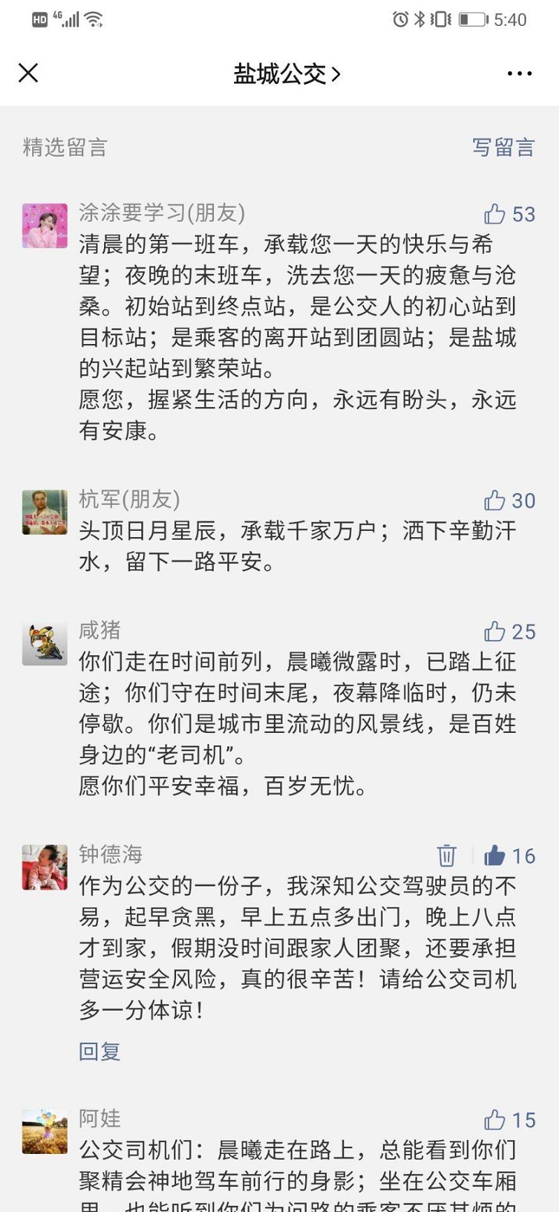 活動(dòng)前期,公司在微信公眾號(hào)開(kāi)辟“為公交駕駛員點(diǎn)贊”留言欄,征集廣大市民對(duì)公交駕駛員的關(guān)心和祝福,為活動(dòng)預(yù)熱;顒(dòng)征集了廣大市民送上的關(guān)懷祝福一百多條,讓駕駛員切實(shí)感受到來(lái)自社會(huì)各界的關(guān)心與祝福,全社會(huì)共同關(guān)心關(guān)愛(ài)公交駕駛員的良好風(fēng)尚進(jìn)一步形成。
